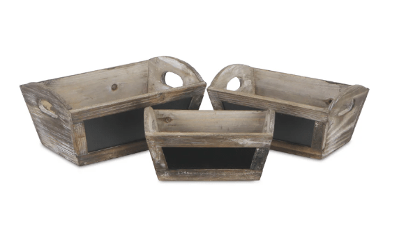 Rectangle Slanted Nesting Planters w/Handle·Rectangle Slanted Nesting Planters w/HandleLg: L: 12.5″ x W: 6.5″ x 4.25″ h x 5.25″ total heightMd: L: 9″ x W: 5.75″ x 3.75″ h x 4.5″ total heightSm: L: 8″ x W: 4.5″ x 3.25″ h x 4.25″ total height949720$59