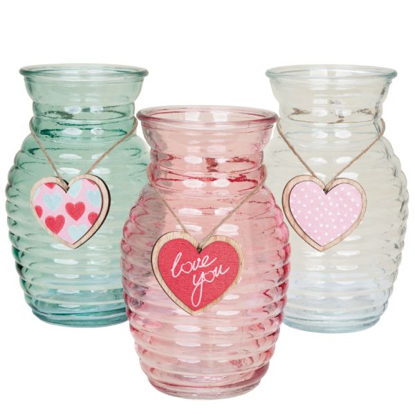 Round Assorted Vase W/Dangler Heart