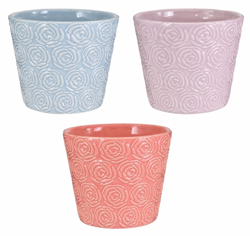 3 Assorted Rose Swirl Ceramic Pots